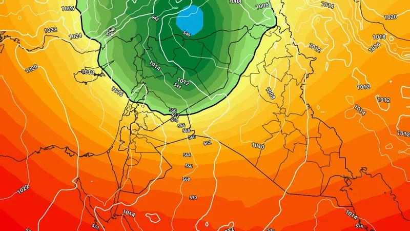 تشير الخرائط الجوية في طقس العرب إلى حدوث تغير كبير على شكل الانظمة الجوية في المنطقة هذا الاسبوع، اذ يسيطر مرتفع جوي قوي في مناطق هامة من غربي القارة الاوروبية مما يفسح المجال بوصول كتل هوائية باردة نحو منطقة الحوض الشرقي للبحر الابيض المتوسط بما فيها الاردن وبالتلي تسود أجواء باردة خلال معظم فترات هذا الاسبوع، التزامن مع توافر فرص لهطول الامطار في عدة فترات، خاصة في المناطق الشمالية من المملكة.