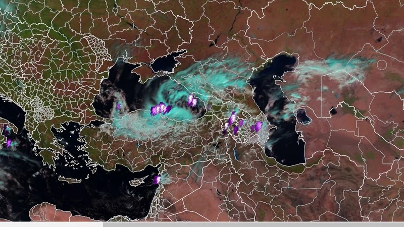 أول #عاصفة_مطرية فوق مياه البحر الأسود هذا العام تتشكل الساعات القادمة