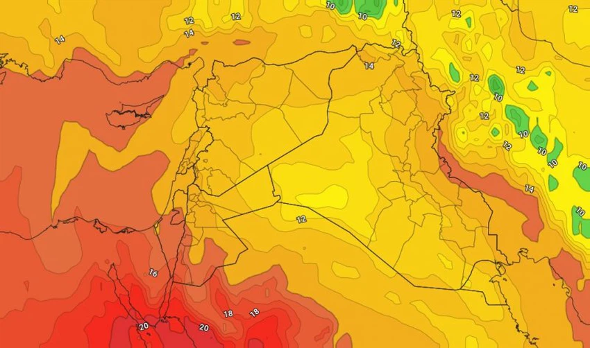 أما عن مناطق الأغوار والبحر الميت والعقبة، فيتوقع أن تسجل درجات الحرارة مستويات عشرينية متقدمة في هذه المناطق، بل وتتراوح ما بين نهاية العشرينات إلى مطلع الثلاثينات خاصة الخميس ونهاية الأسبوع في أجزاء من الأغوار ولا سيما الجنوبية منها وسط أجواء أدفأ من المعتاد نسبةً لمثل هذا الوقت من العام. ويمكن وصفها بأنها حارة نسبيًا مع النصف الثاني من الأسبوع إن شاء الله.