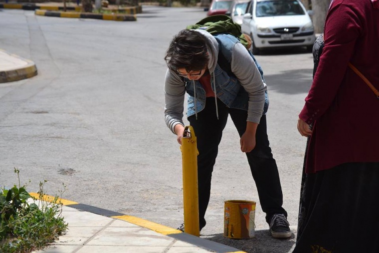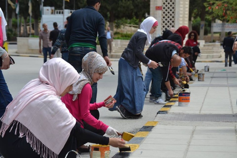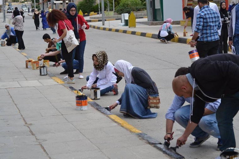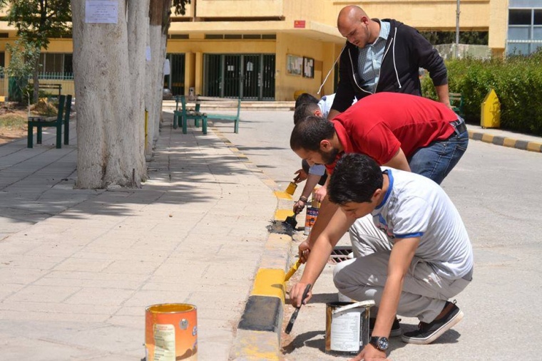 احتفالاً بعيد العمال، نظمت قائمة التجديد في الجامعة الأردنية يوم عمل تطوعي داخل الحرم الجامعي اشتمل على طلاء ارصفة الجامعة.