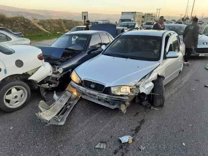 وقع صباح اليوم الاثنين حادث تصادم في منطقة المصطبة على طريق اربد – عمان بين 10 مركبات.
