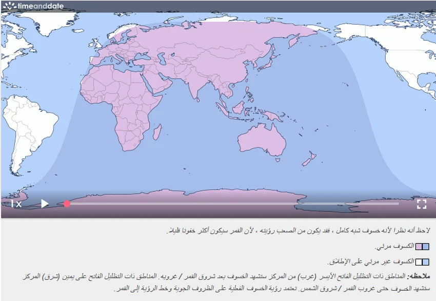 وسيتمكن سكان روسيا والقارة القطبية الجنوبية، ومعظم سكان آسيا وجنوب شرق أوروبا، وأستراليا، وإفريقيا، بما في ذلك الوطن العربي، ومناطق المحيطين الأطلسي والهندي من مشاهدة ظاهرة خسوف القمر في الخامس من مايو القادم.