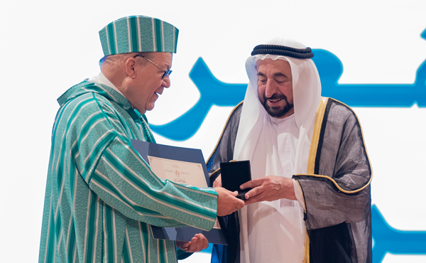 وكرم راعي الحفل القاسمي شخصيتي المهرجان لهذا العام بجائزة الشعر كل من : طلال سالم الصابري ،من الامارات والشاعر اسماعيل بن عمر زويريق من المغرب . وقدم الشاعر طلال الصابري قصيدة :