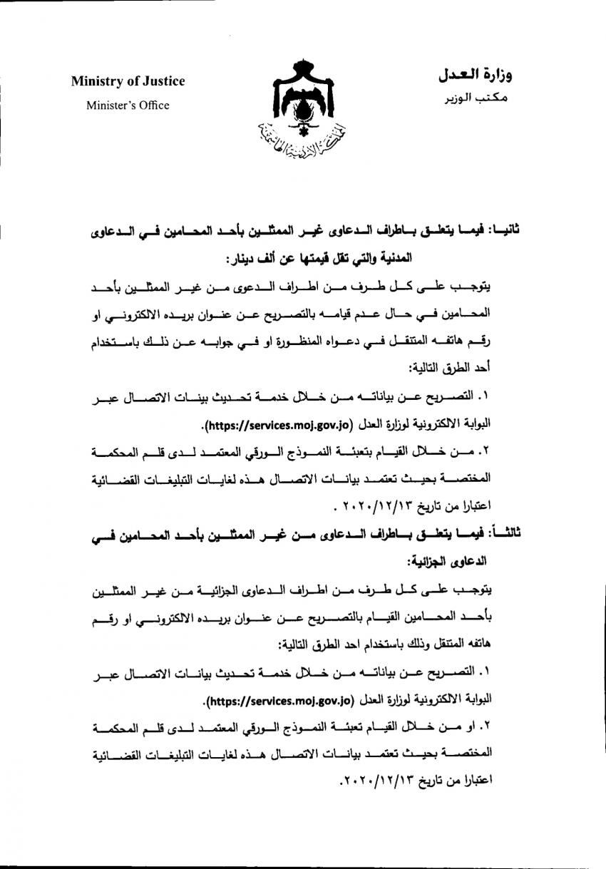 أعلن وزير العدل، بسام التلهوني، اليوم الأحد، تطبيق أمر الدفاع 21 الخاص بالتبليغات القضائية، اعتباراً من 13 الشهر الجاري.